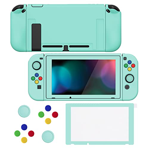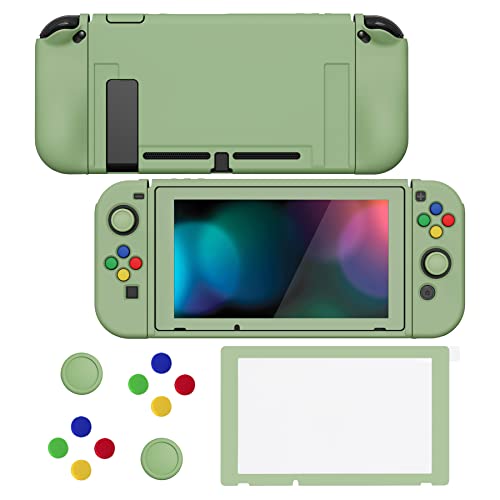 playvital ZealProtect Soft Protective Case for Nintendo Switch, Flexible Cover Protector for Switch with Tempered Glass Screen Protector & Thumb Grip Caps & ABXY Direction Button Caps - Matcha Green
