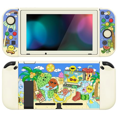 playvital ZealProtect Soft Protective Case for Nintendo Switch, Flexible Cover Protector for Switch with Tempered Glass Screen Protector & Thumb Grips & ABXY Direction Button Caps - Fruity Party