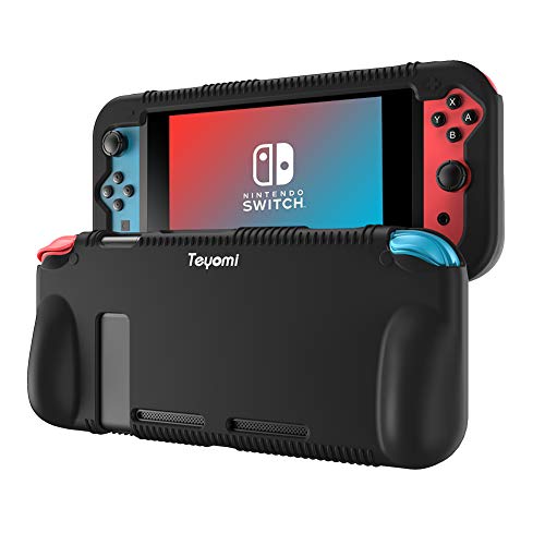 Teyomi Protective Silicone Case for Nintendo Switch, Grip Cover with 2 Storage Slots for Game Cards, Shock-Absorption & Anti-Scratch (Black)