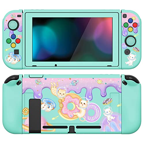 playvital ZealProtect Soft Protective Case for Nintendo Switch, Flexible Cover Protector for Switch with Tempered Glass Screen Protector & Thumb Grips & ABXY Direction Button Caps - Donut Odyssey