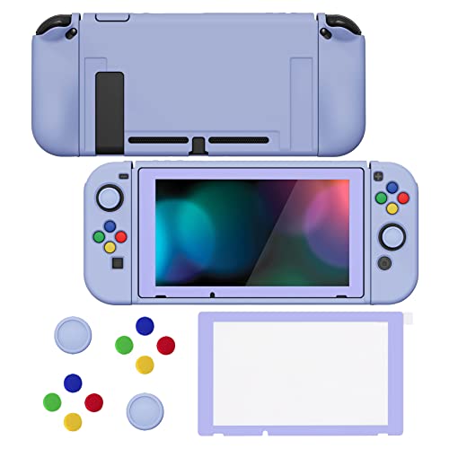 playvital ZealProtect Soft Protective Case for Nintendo Switch, Flexible Cover Protector for Switch with Tempered Glass Screen Protector & Thumb Grip Caps & ABXY Direction Button Caps - Light Violet