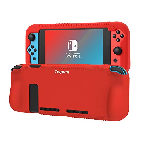 Teyomi Nintendo Switch Case Cover Protective Silicone Case Grip Cover with 2 Storage Slots for Game Cards, Shock-Absorption & Anti-Scratch (Red)