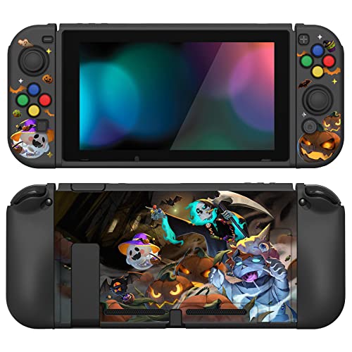 playvital ZealProtect Soft Protective Case for Nintendo Switch, Flexible Cover for Switch with Tempered Glass Screen Protector & Thumb Grip Caps & ABXY Direction Button Caps - Halloween Candy Night