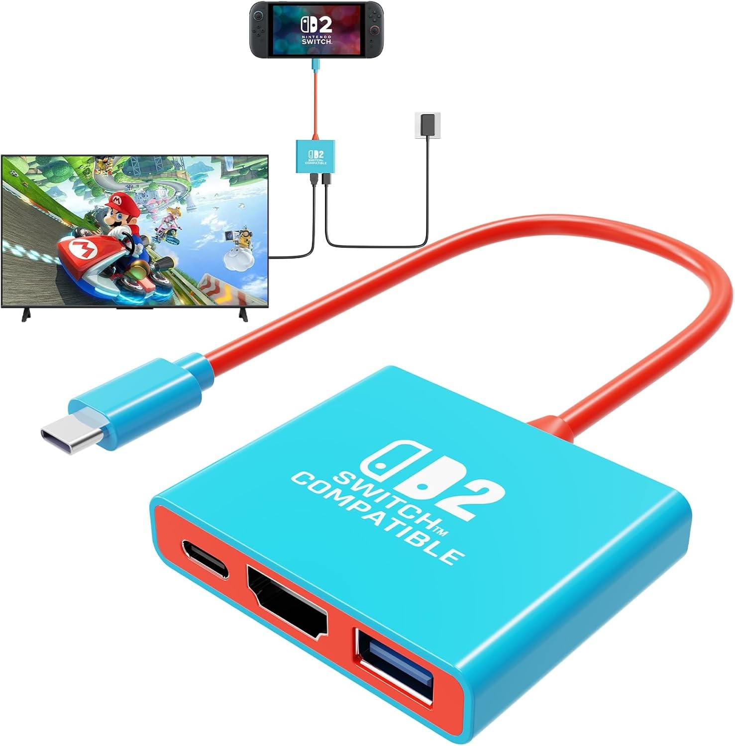 Switch 2 Tv Dock, 1 Pcs 3-in-1 for Nintendo Switch 2 Dock, with Nintendo Switchs Docks, Dedicated of Switchs Base for Switches Two/Switches Oled, Three-In-One Tv Adapter(Blue+Red)