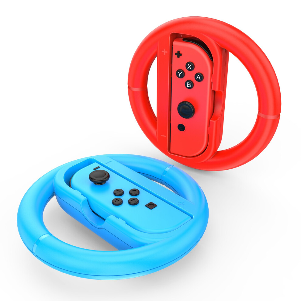 Steering Wheel Set for Nintendo Switch JoyCon Ergonomic Grip, Immersive Racing, Red and Blue