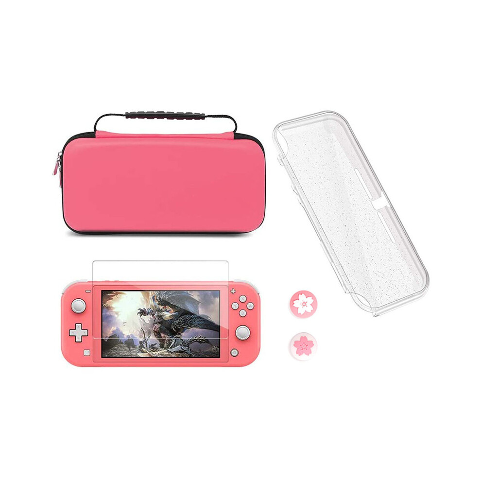 YUANHOT Accessories Bundle Compatible with Nintendo Switch Lite Carry Case & TPU Protective Case Cover & Thumb Grip Covers & Screen Protector - Coral
