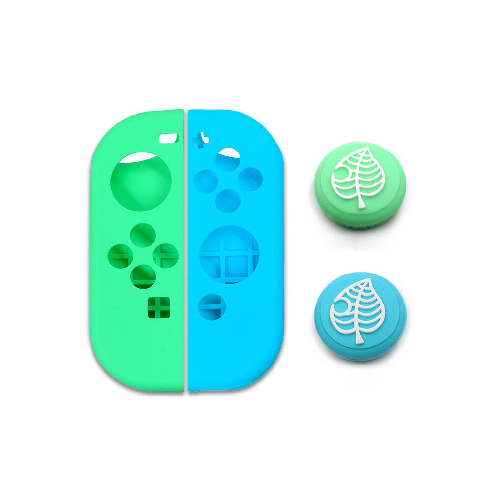 Tscope Cute Thumb Grip Caps for Nintendo Switch/Lite/OLED Controller, for Animal Crossing Kawaii Leaf Joystick Analog Soft Silicone Button Stick Covers for NS Joy Cons (Blue Leaf)