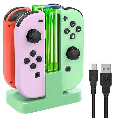 Switch Charger for Joy Con with LED Light Bar, FYOUNG for Nintendo Switch/OLED Controller Charger Dock, Switch Accessories for Joycon Charging Stand with Individual LED Indicator - Green