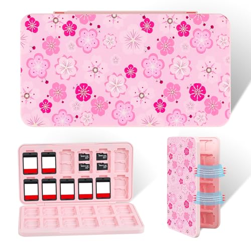 OLDZHU Cute Switch Game Case Holder Compatible with Nintendo Switch&Switch OLED Game,Switch Game Card Case Storage for 24 Games Cartridges and 24 Micro SD Card (Cherry Blossoms)