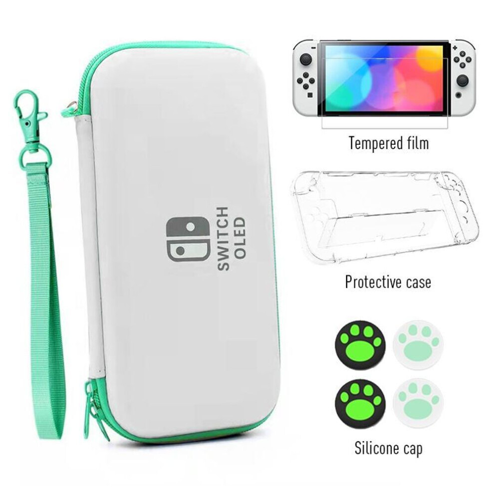 (green, Switch Oled Set) DATA FROG Portable Carrying Case Compatible Nintendo Switch OLED Console Screen Protector for Switch Oled Clear Case Accessor
