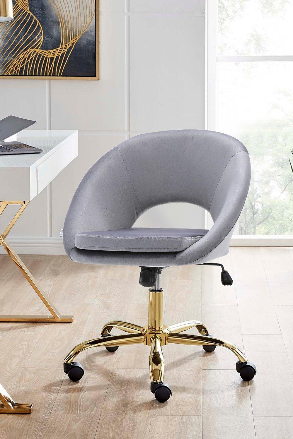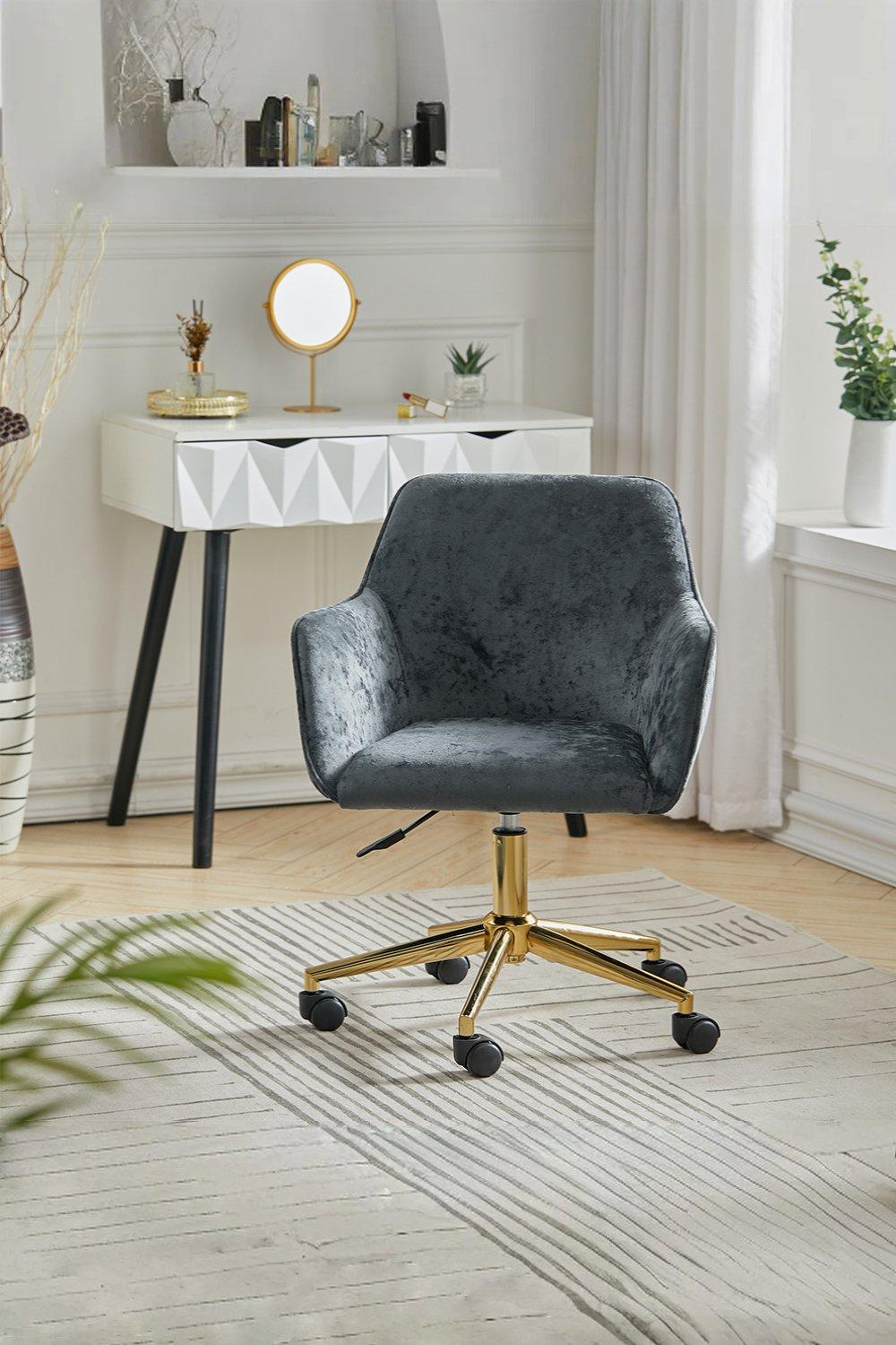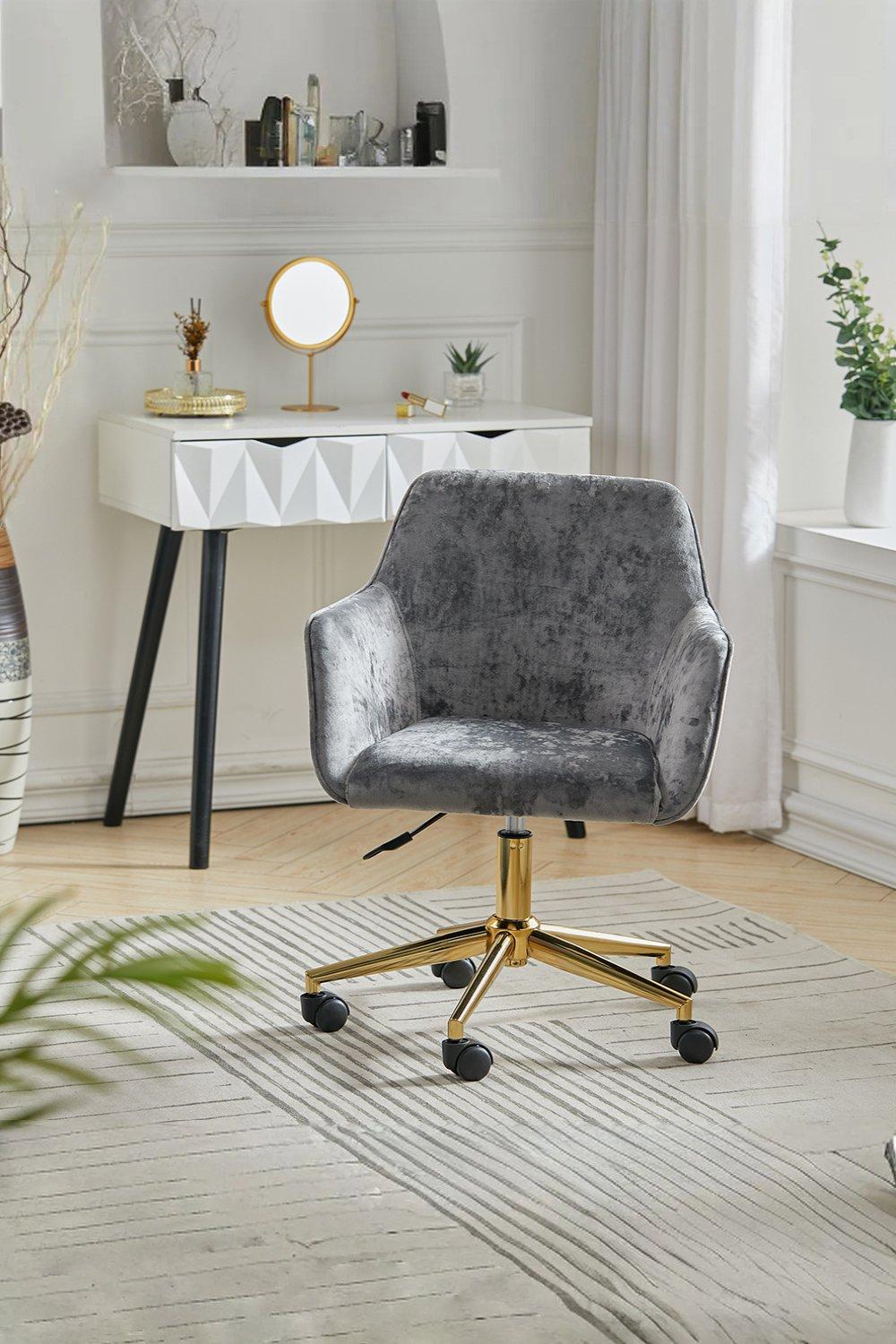 Grey Velvet Swivel Office Chair Height Adjustable for Home Office