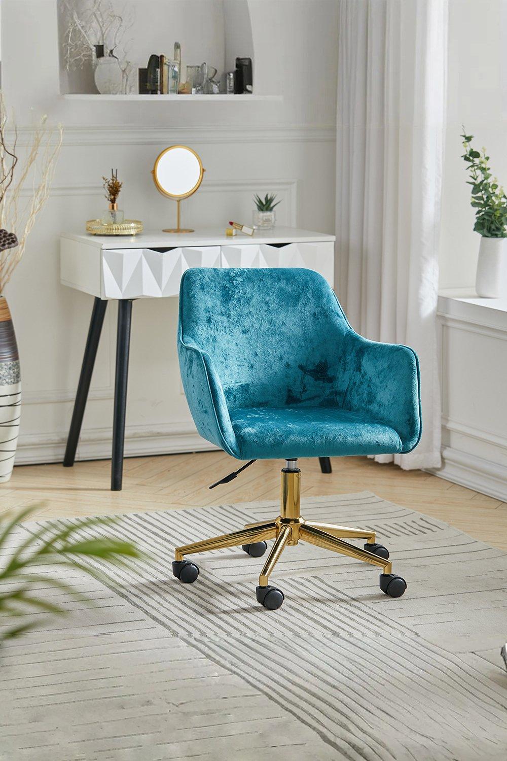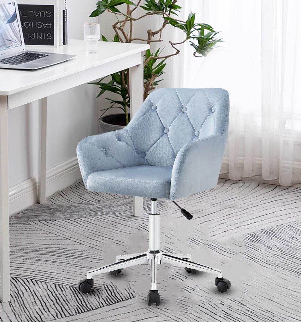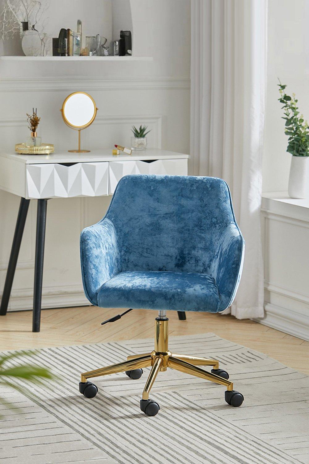 Blue Velvet Swivel Office Chair Height Adjustable for Home Office
