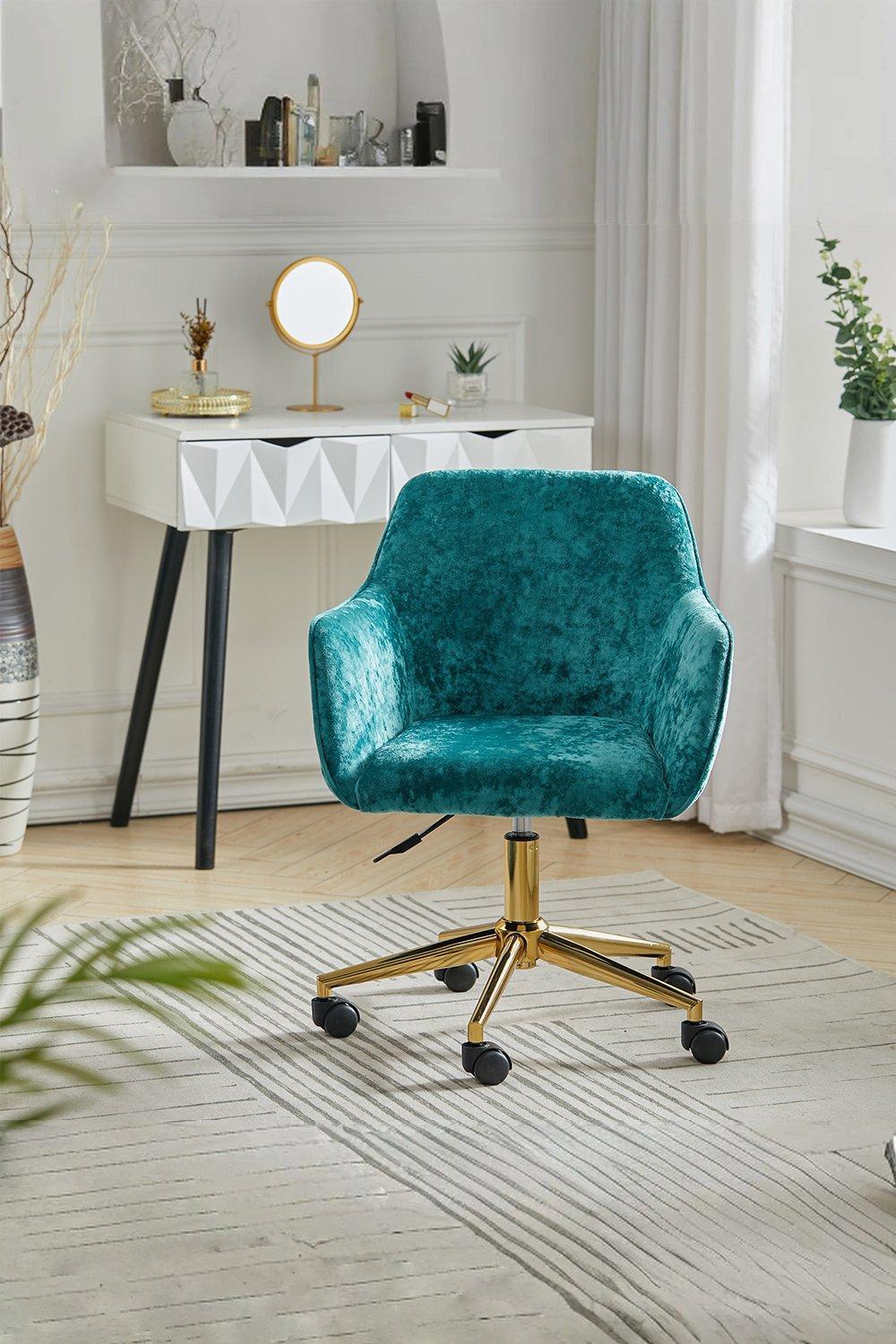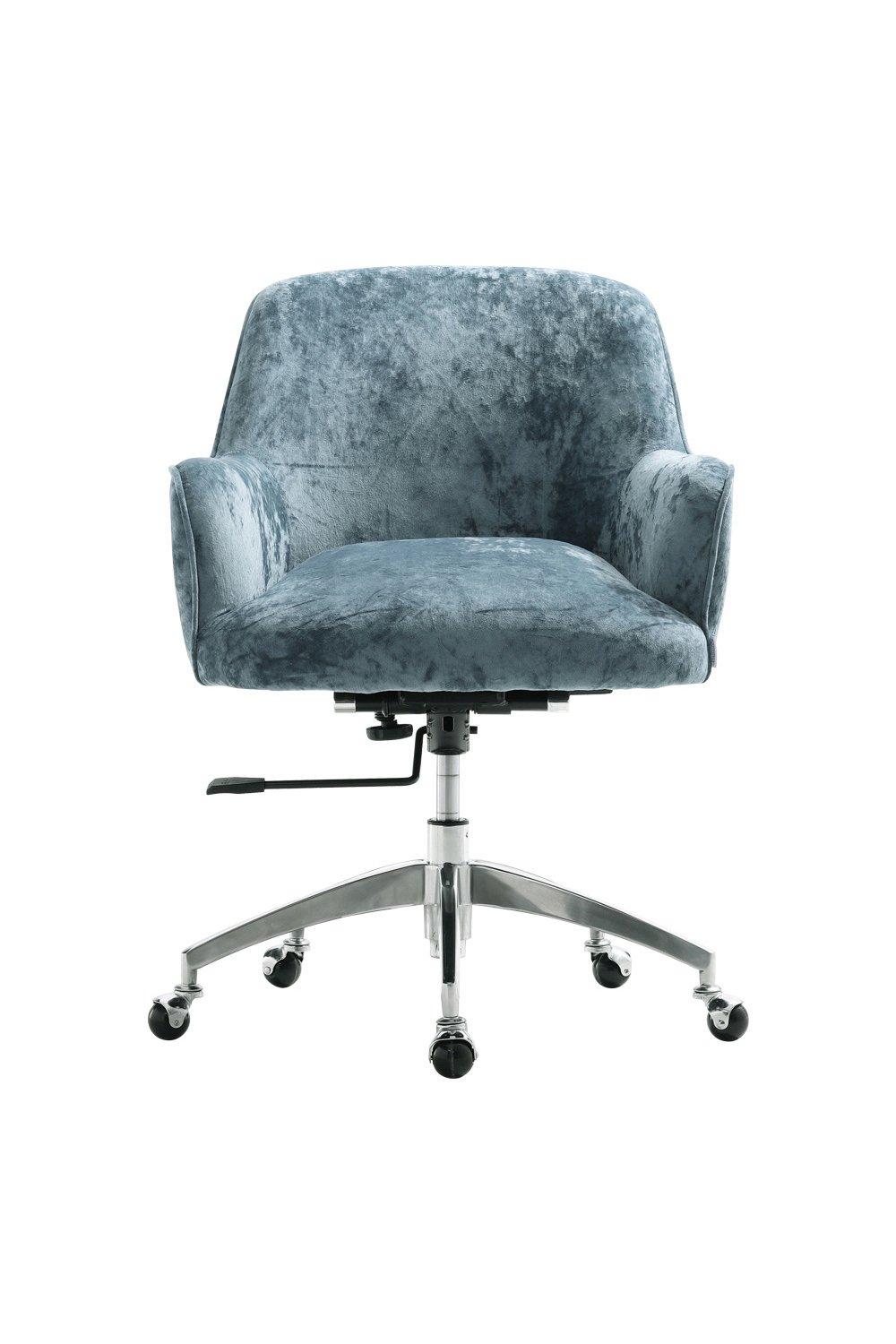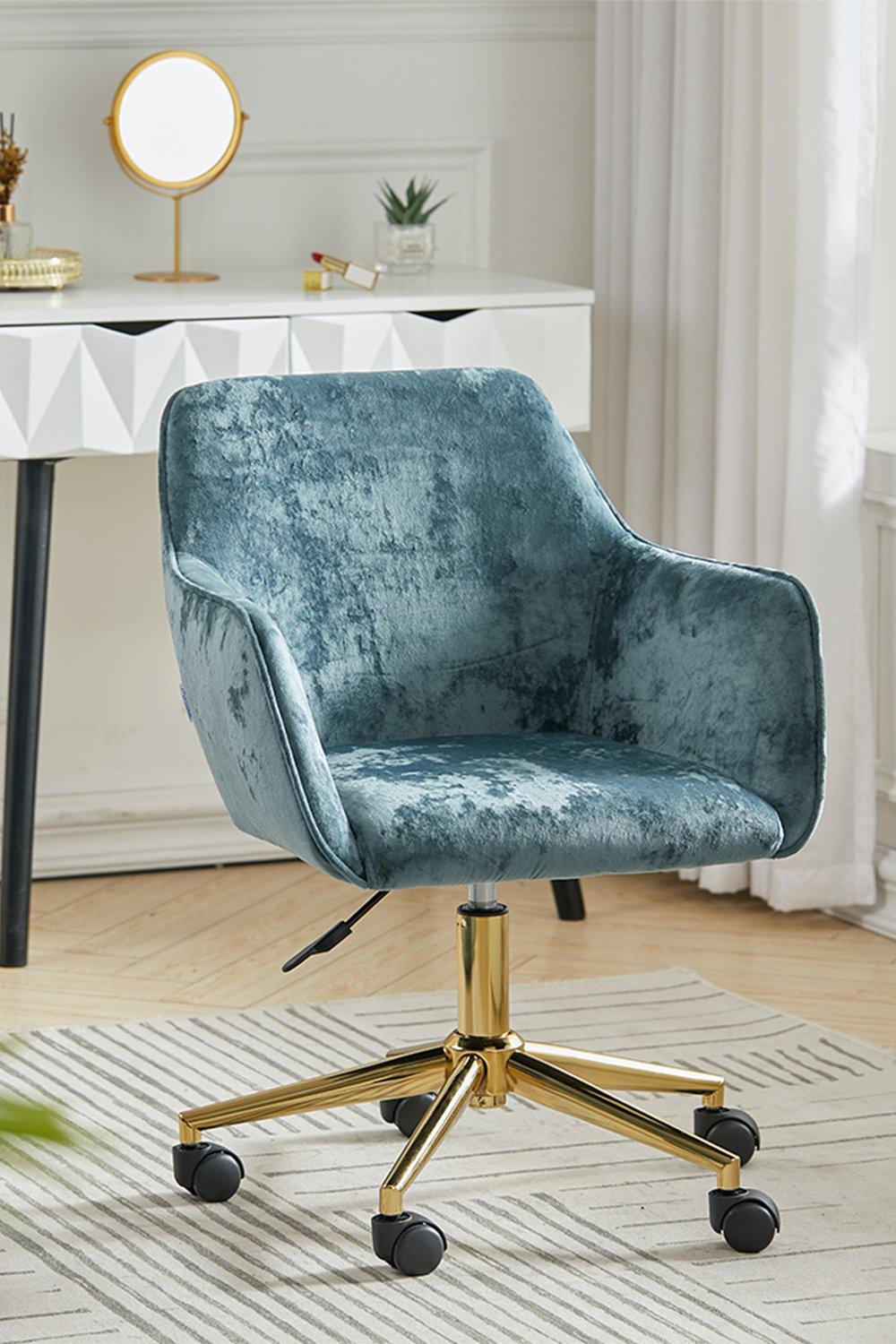 Blue Velvet Swivel Office Chair Height Adjustable for Home Office