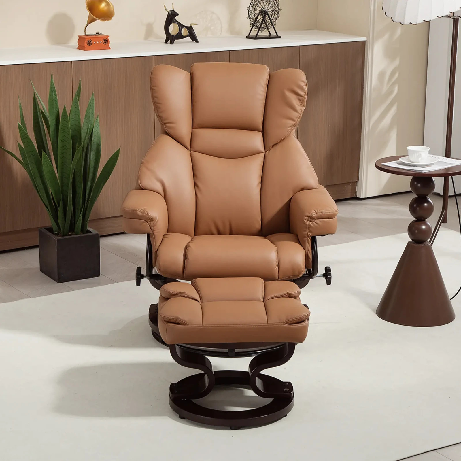 PU Leather Swivel Chair Recliner Armchair With Footstool