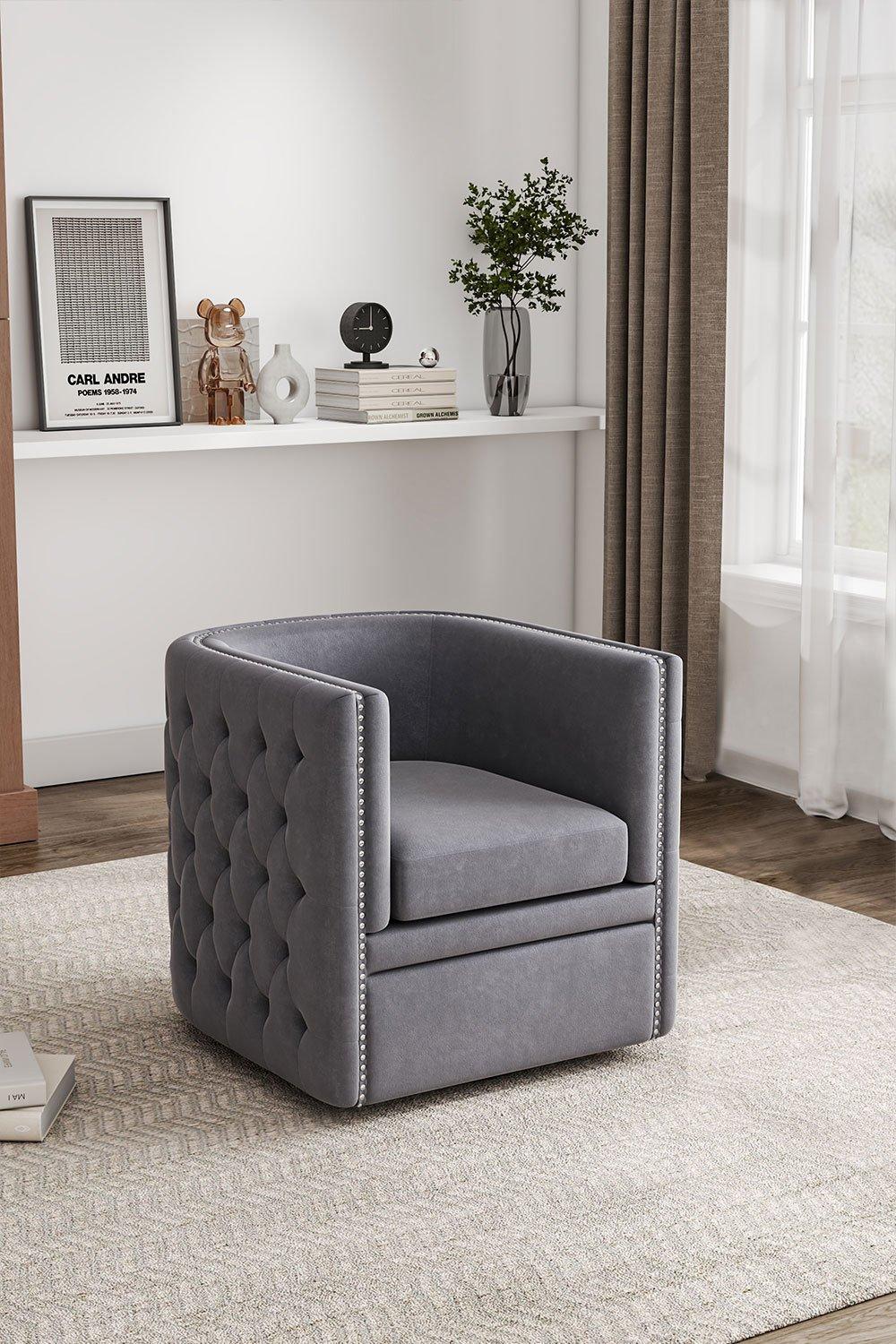 Teddy Velvet Upholstered Swivel Barrel Chair
