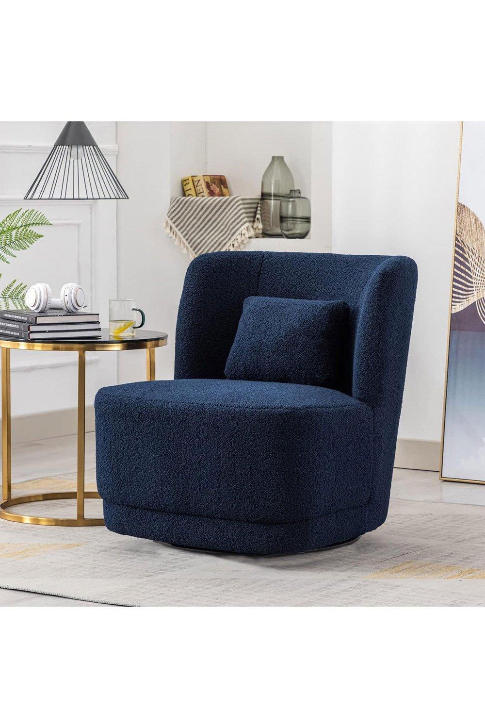Blue Teddy Fur Upholstered Swivel Barrel Chair with Pillow