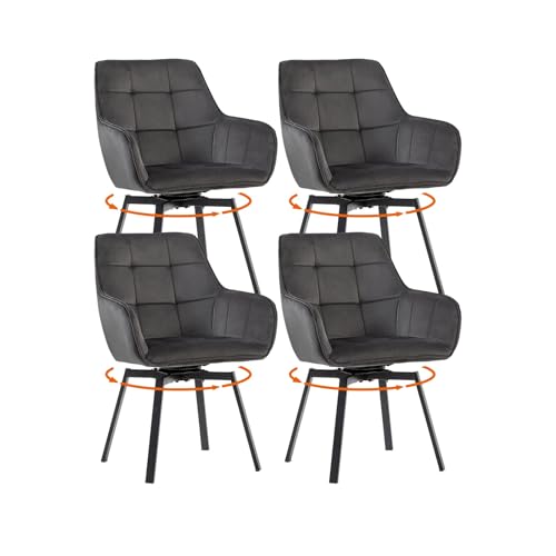 WOLTU Set of 4 Swivel Dining Chairs, Living Room Chairs with Upholstered Seat, Metal Legs, Wide Padded Ergonomic Chairs Kitchen Chairs, Dark Grey Velvet Dressing Table Chairs