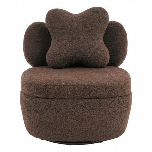 Aptliton 360° Swivel Rotating Lounge Chair with Storage, 27 Inch High Teddy Velvet Upholstered Armchair, Soft Padded Seat, Wood Base, Modern Scratch-Resistant Accent Chair for Bedroom Living Room