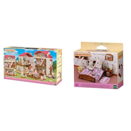 Sylvanian Families Red Roof Country Home -Secret Attic Playroom- & Semi-Double Bed, Multicolor, 4.9 x 2.3 x 4.7 cm, Dollhouse Playset, Bed, Children, Kids