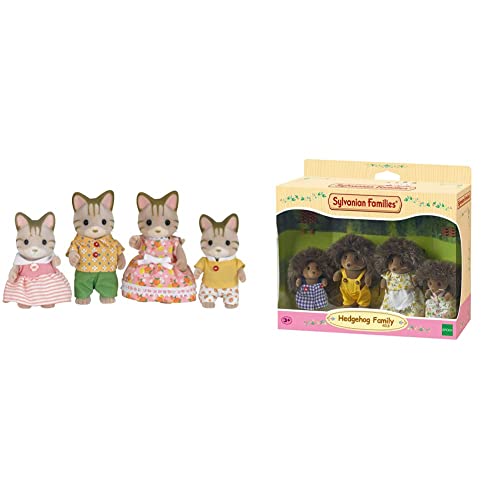 Sylvanian Families - Striped Cat Family & Hedgehog Family