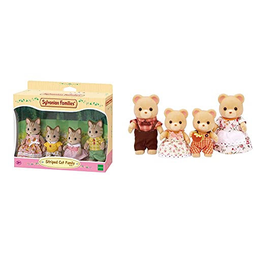 Sylvanian Families - Striped Cat Family & 5338 Children's Bedroom Set, Multicolor