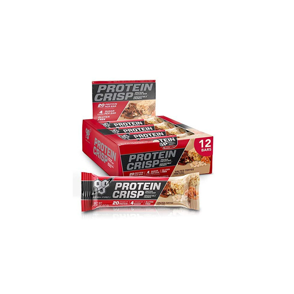 BSN Protein Crisp Bar by Syntha-6, Low Sugar Whey Protein Bar, Salted Toffee Pretzel, 12 Count