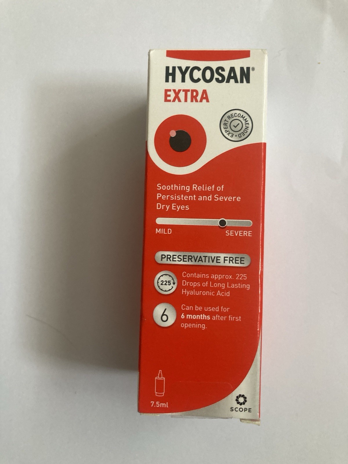 Hycosan Extra Preservative-Free Lubricating Eye Drops 7.5ml - Exp: 04/2028