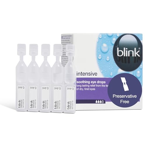 Blink Intensive Soothing Eye Drops, Relief From Dry Eyes - Long-Lasting Lubricating Eye Drops with Hyaluronic Acid, Suitable for Use with Contact Lenses, Refreshing Single Vials, 20 x 0.4 ml