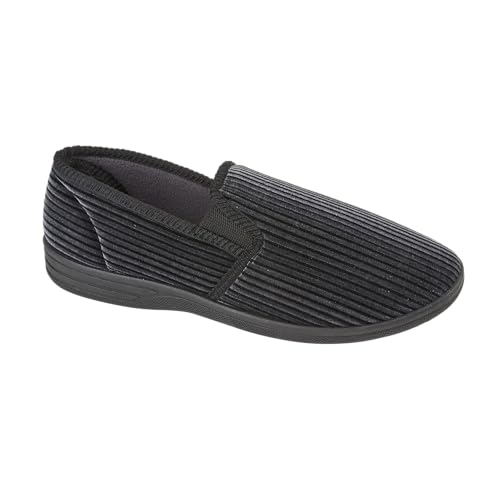 Jo and Joe Men's Twin Gusset Slipper with Cushioned Foam in-Sock for Extra Comfort & Support in Sizes 6-12 (Black, 10, UK Footwear Size System, Adult, Men, Numeric, Medium, 10)