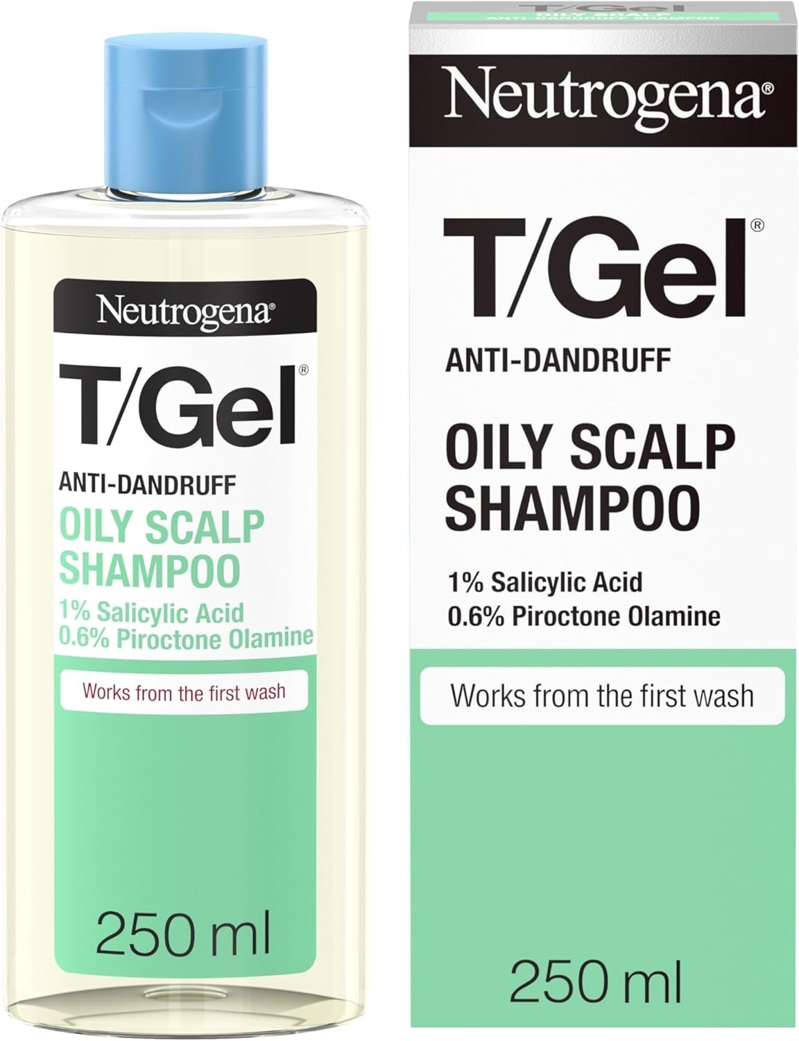Neutrogena T/Gel Anti Dandruff Shampoo for Oily Scalp and Hair (1x 250ml), Daily Anti-Dandruff Shampoo with Salicylic Acid to Remove Excess Oils from