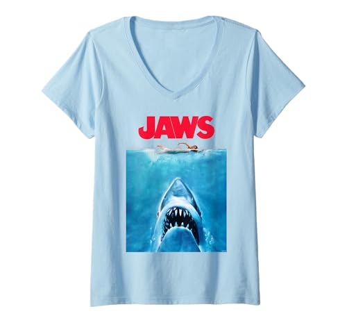 Womens Jaws Classic Movie Poster Close-Up V-Neck T-Shirt