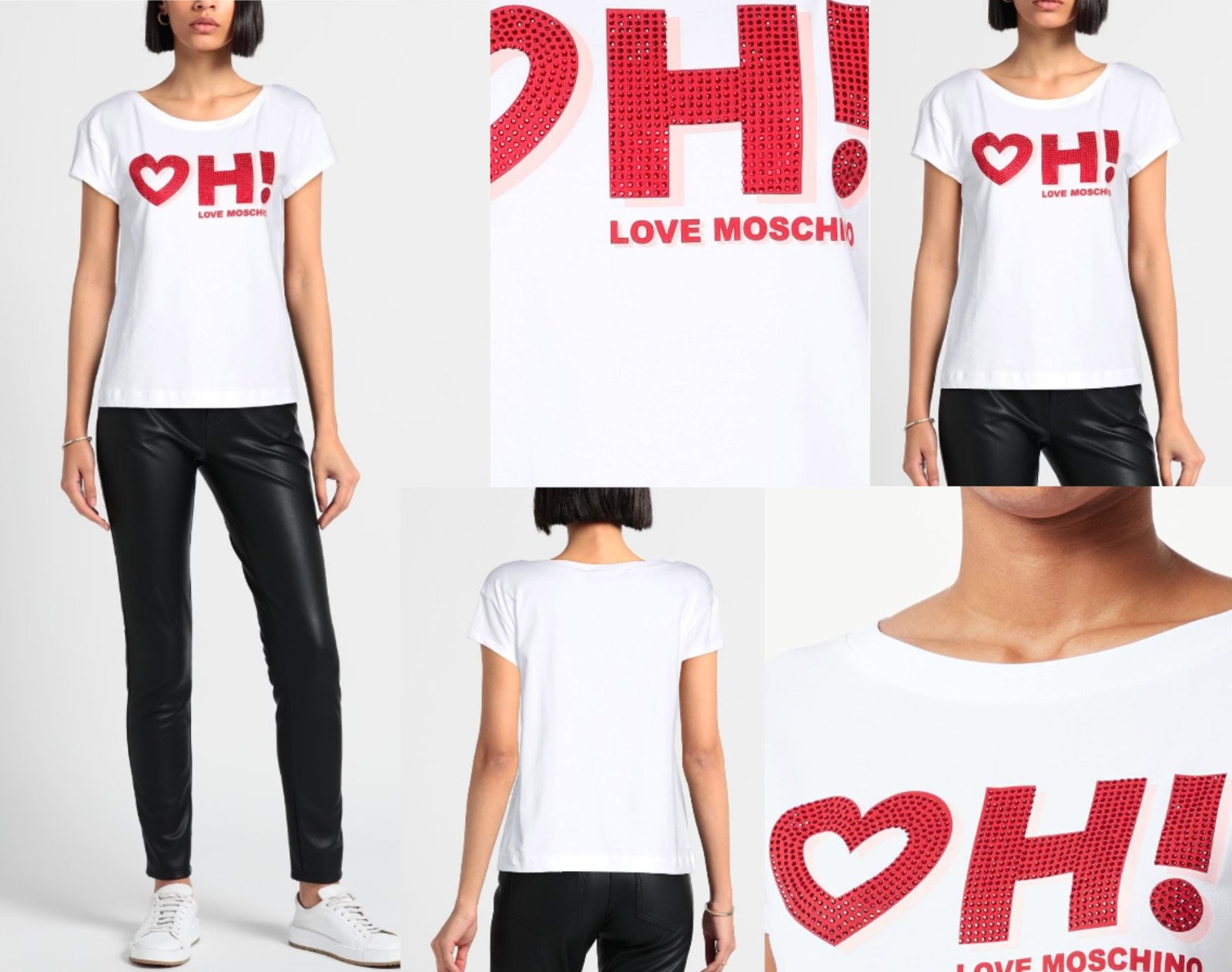 Moschino Love Blouse Heart OH! Shirt T-shirt Boxy Fit Rhinestones Strass New L