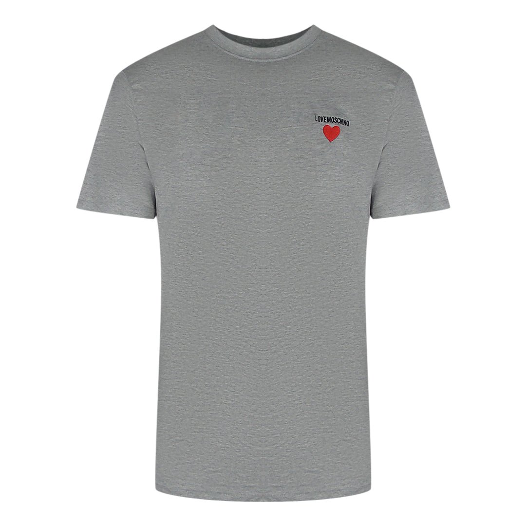 Moschino Mens Love Small Logo Grey T-shirt Cotton - Size Large