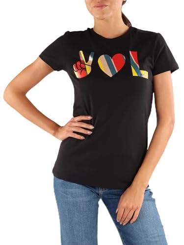 Love Moschino Women's Short-Sleeved t-Shirt with Striped Peace Print, Black, 22