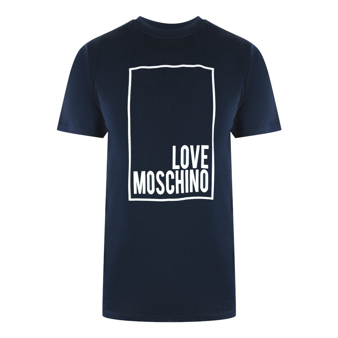 Moschino Mens Love Box Logo Navy Blue T-shirt Cotton - Size Large