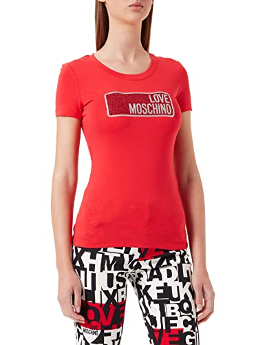 Love Moschino Women's t-Shirt Glittered Brand Print, Red, 40