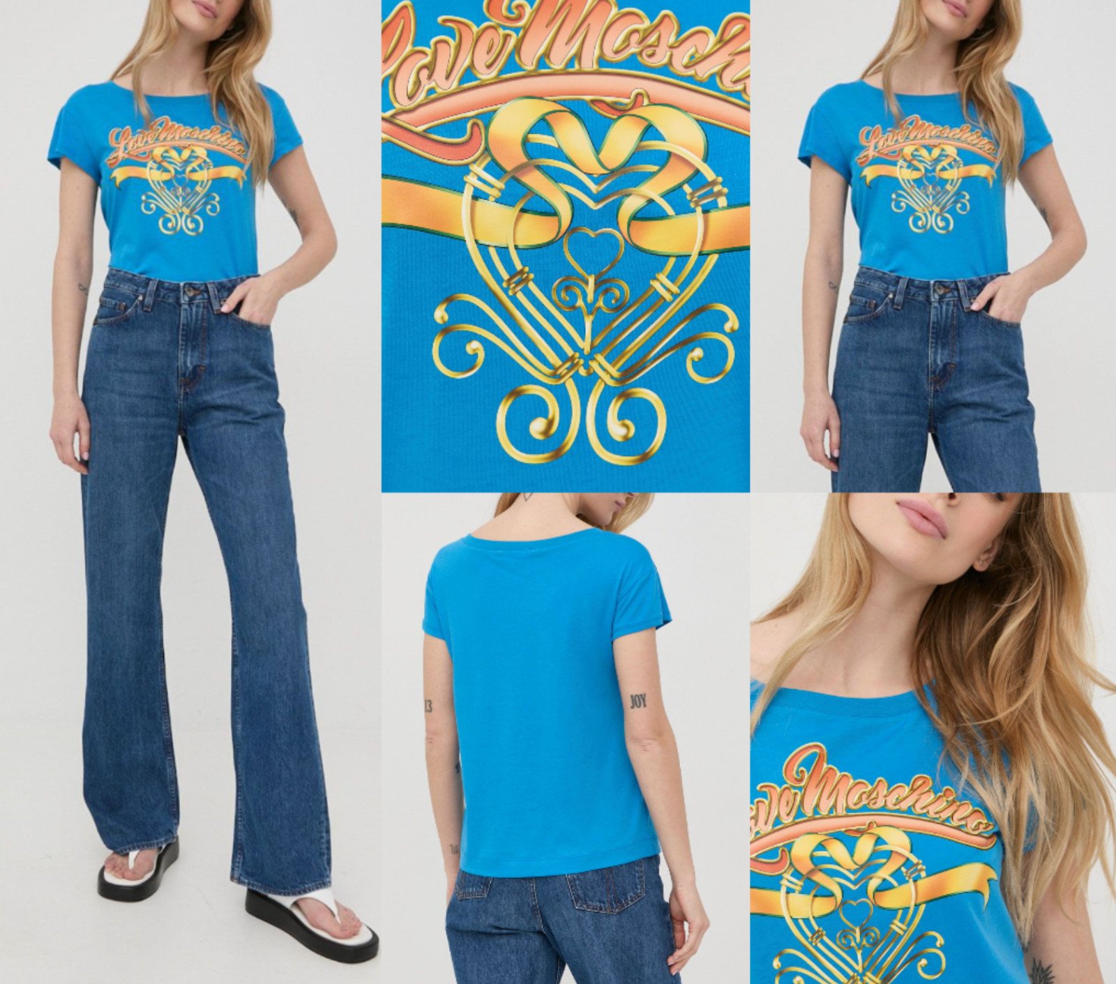 Moschino Love Tee Blouse Logo Top Cotton T-Shirt Blouse Retro Shirt Jersey Wow S