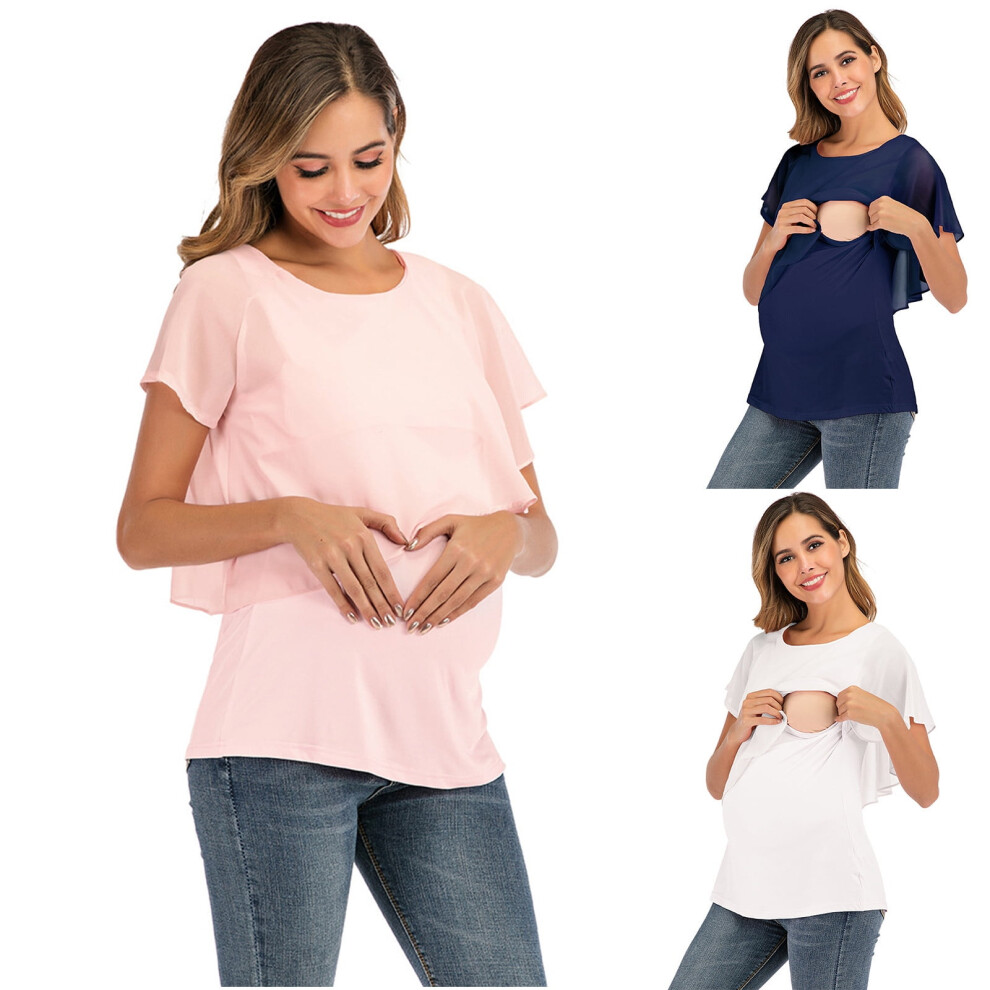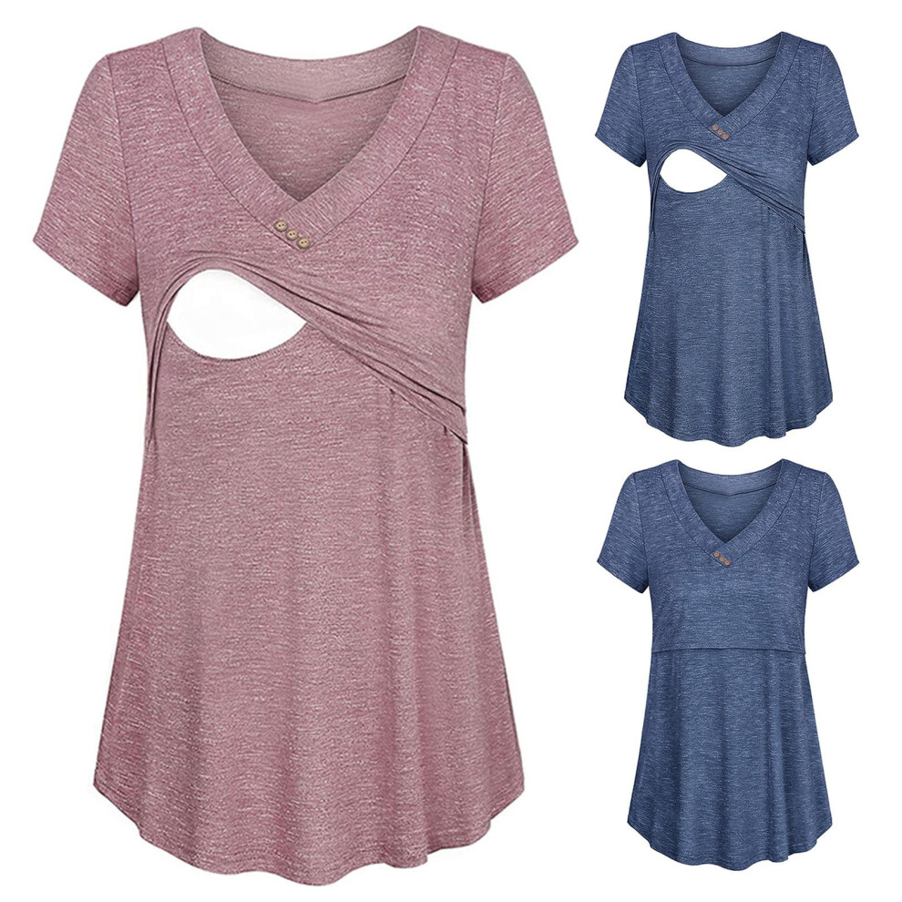 Womens Maternity V neck Casual Loose Breastfeeding T Shirts Top Pregnancy Clothes For Summer