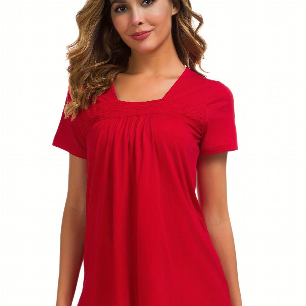 Womens Maternity Square Neck Cotton Casual Loose Lace Pleated T Shirts Top Pregnancy Clothes For Summer
