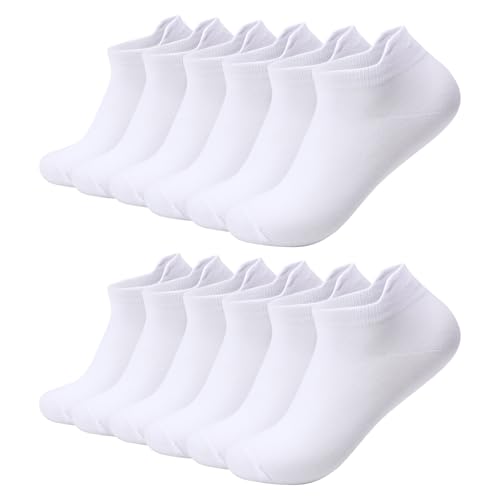 6 Pairs Womens Ankle Socks Running Athletic Low Cut Cushioned Sole Socks With Tab (UK, Alpha, One Size, Regular, Regular, 6x White)