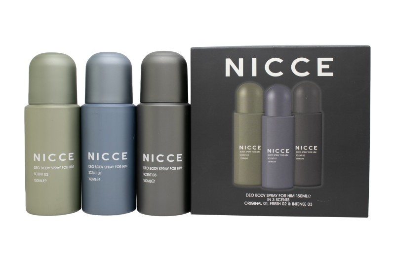 Nicce Deo Body Spray Gift Set 3 x 150ml Original 01 + Fresh 02 + Intense 03