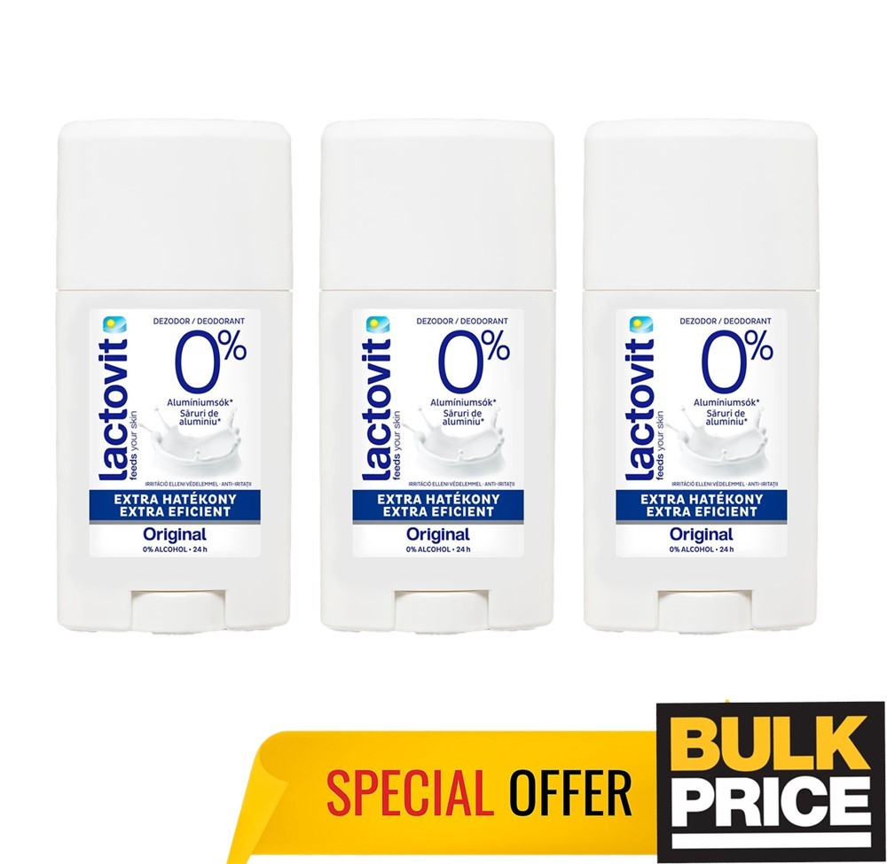Lactovit Original Deodorant Stick Anti-Irritation Extra Effective 60ml 3-Pack