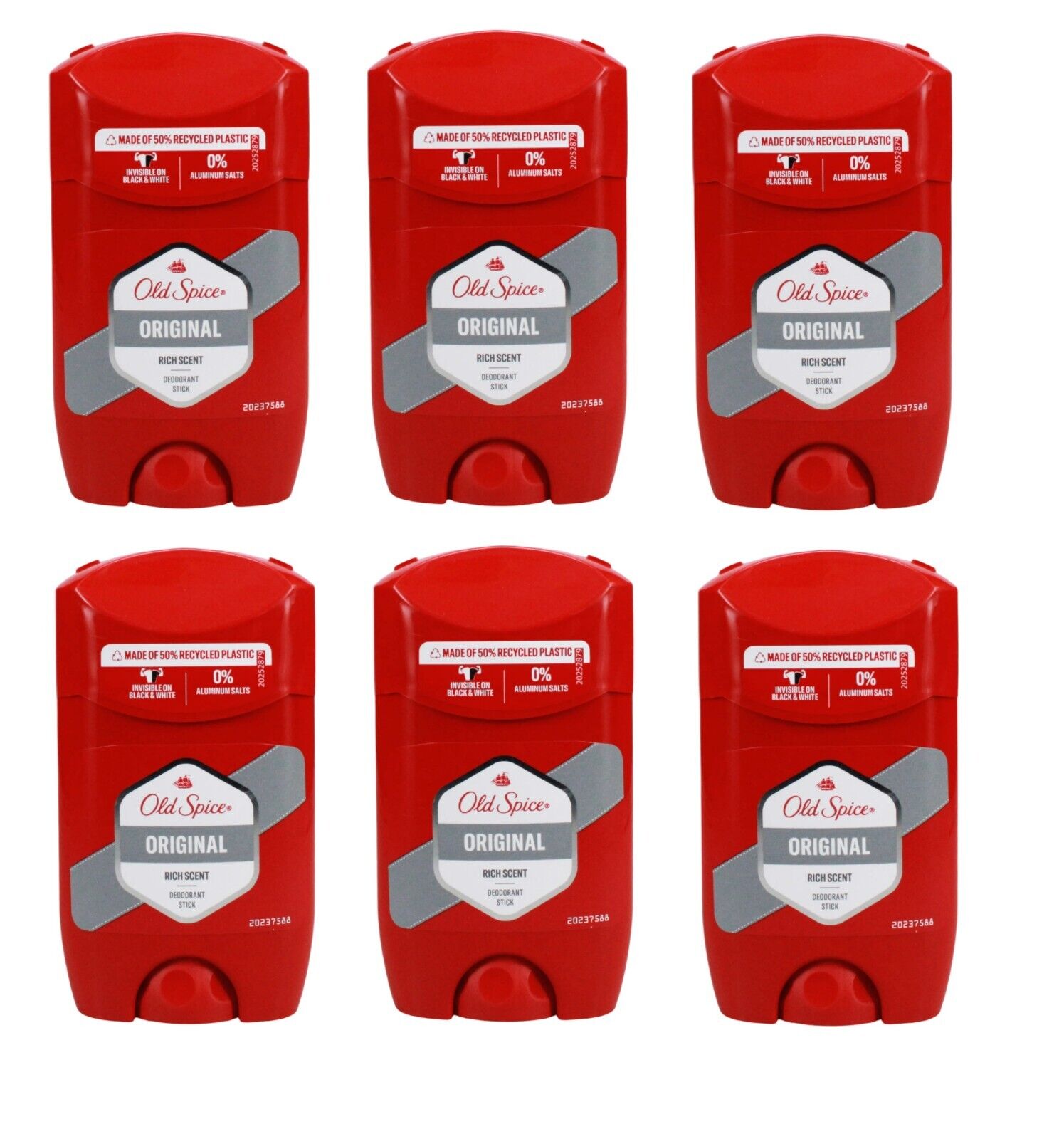 Old Spice Original Deodorant Stick For Men, Aluminium Free, Long Lasting Perfume Quality Scent, 48H Fresh, Invisible on Black & White, Multipack 6 x 50ml