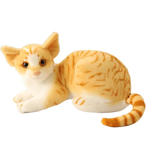 HoveeLuty Tabby Cat Stuffed Animals, American Shorthair Plush Realistic Cat Toy, Kitty Stuffed Animals Dolls Gifts for Anxiety, Women Kids Bedtime, Yellow Lifelike