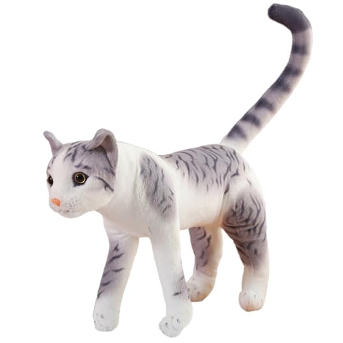 JORCEDI Realistic Stuffed Cat Toy, Cat Doll, Tabby Cat Stuffed Animals, Faux Plush Kitten Toy, Face Standing Cat, Sofa Ornament Stuffed Animal For Birthday Gifts Teens (35cm,hui)