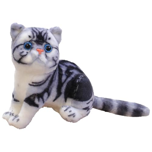 Cat Plush, Soft Sitting Stuffed Animal for Kids Home Decor Cuddly Bedroom Sleeping Companion(Tabby cat,25cm/9.8in)