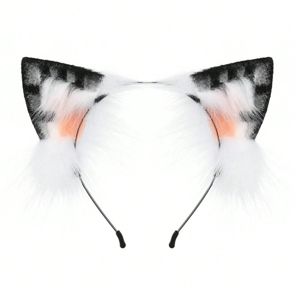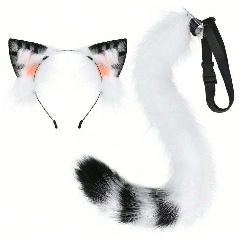 (Tabby cat tail) Cute plush tabby cat with animal ears and tail for comic exhibition cosplay cat headband and cat tail set props