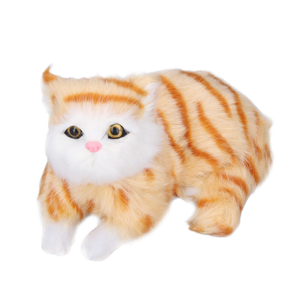 JORCEDI Realistic Stuffed Cat Toy, Cat Doll, Tabby Cat Stuffed Animals, Faux Plush Kitten Toy, Face Standing Cat, Sofa Ornament Stuffed Animal For Birthday Gifts Teens (35cm,huang)