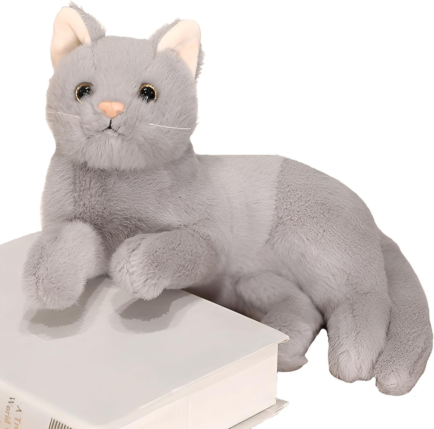 Cat Stuffed Animal, Lifelike Tabby Kitten Plushie Realistic Soft Fluffy Home Decor Cuddle Companion Plush Gift for Kids Adults(Lying Gray Cat,35cm/13.7")