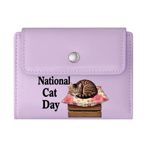 GEEADNB Zipper Womens Wallet Women ID Credit Card Case tabby cat floral-patterned pillow cozy atmosphere Graduation Student Romantic Gifts for Wife Girlfriend
